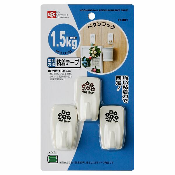 本体サイズ(約):W25×D20×H50mm取り付け方法:粘着テープ荷重(約):1.5kg包装形態:ブリスター台紙(1台紙3個付)