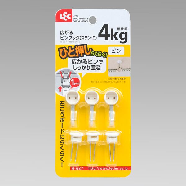 本体サイズ(約):W15×D15×H40mm取り付け方法:ピン荷重(約):4kg包装形態:ブリスター台紙(1台紙3個付)
