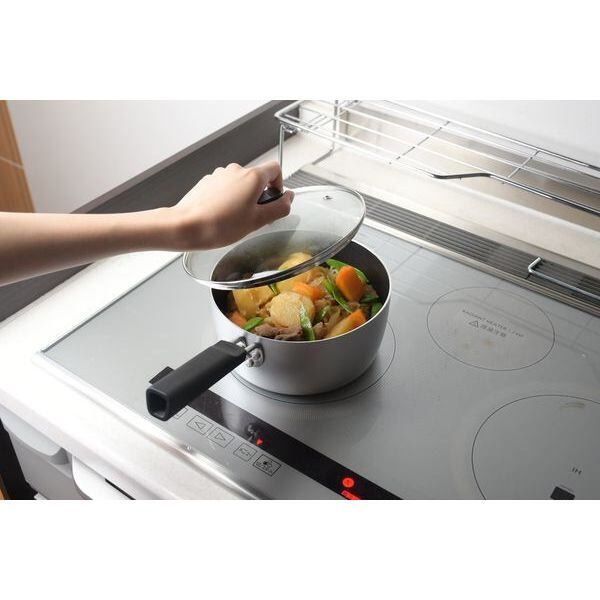 チーノ ふっ素加工IH対応ガラス蓋付片手鍋18cm