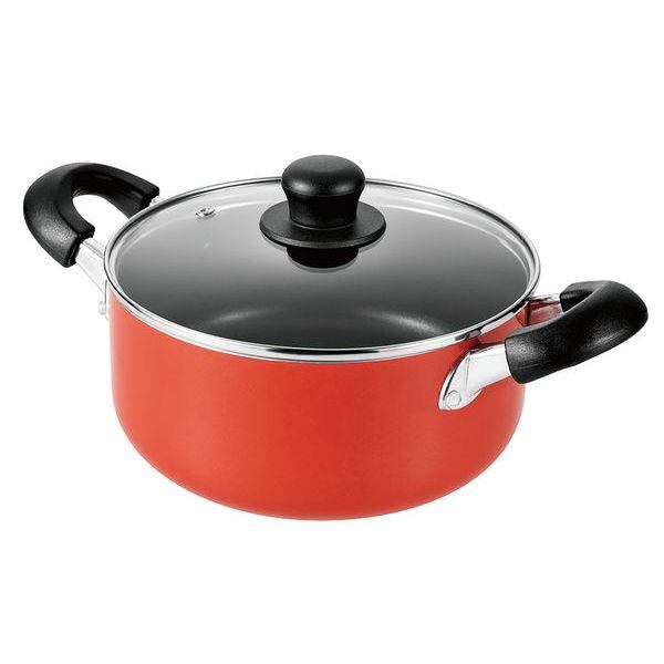 本体<br>表面加工/内面:ふっ素樹脂塗膜加工<br>外面:焼付け塗装<br>本体:アルミニウム合金<br>はり底:ステンレス鋼(クロム16%)<br>取っ手:フェノール樹脂(耐熱温度150度)<br>ガラス蓋<br>品名:強化ガラス製器具<br>強化の種類:全面物理強化<br>つまみ:フェノール樹脂(耐熱温度150度)<br>つまみの座板:ナイロン(耐熱温度180度)<br>縁リング:ステンレス鋼
