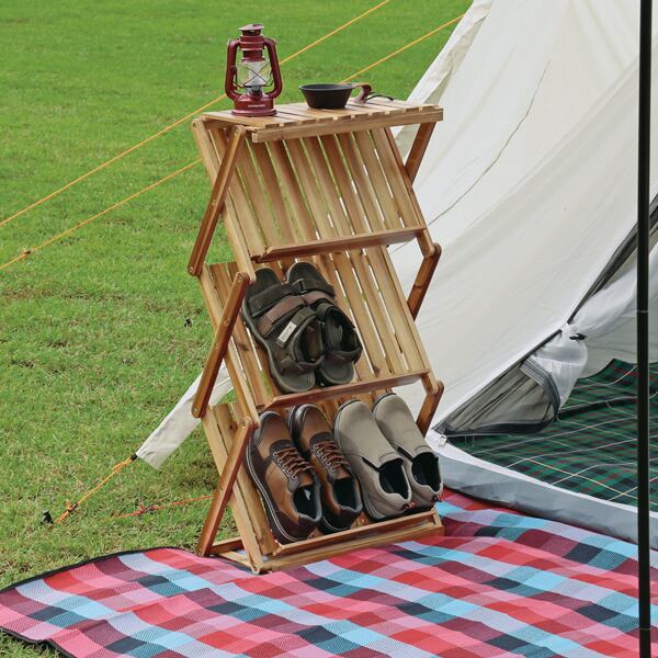 ○シューズラックとして、テントの出入り口に設置○リビングスペースにブックスタンドとしても!