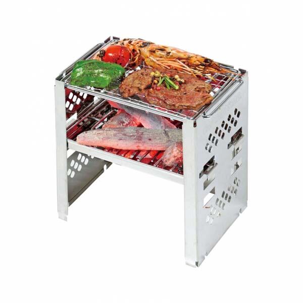 本体・炭受け:ステンレス鋼ゴトク・アミ・目皿:鉄(クロムめっき)収納バッグ:ポリエステル