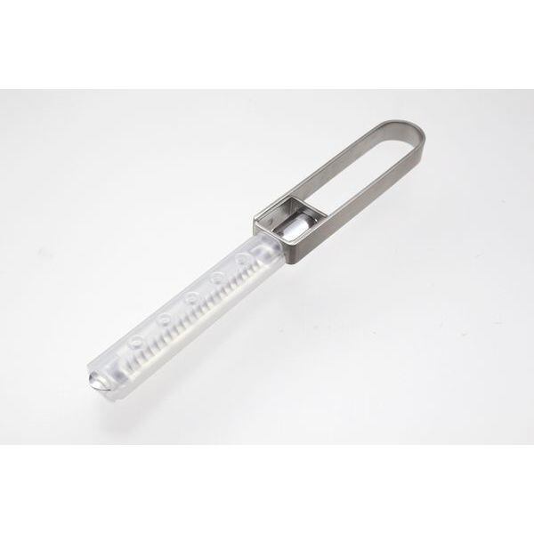 縦型ピーラーに独自の立ち上がった刃によって均一な細切りが出来ます。
