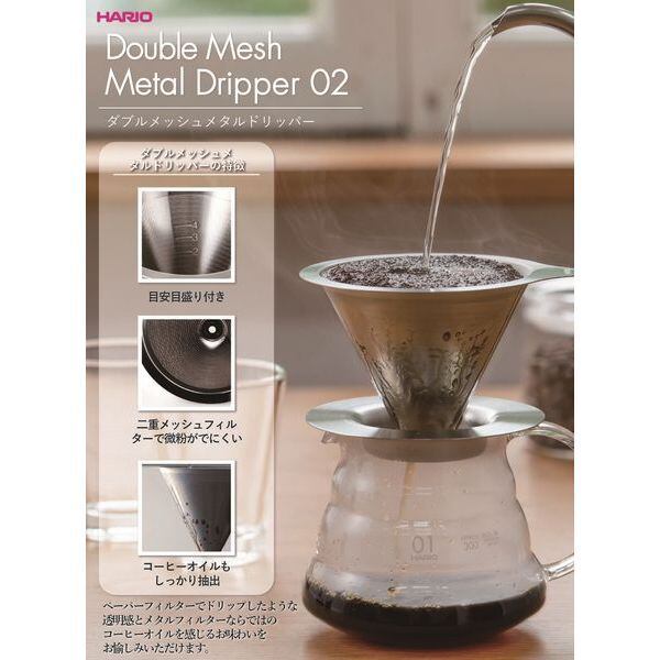 〇細かいエッチング加工を施したメッシュを二重にしている為、コーヒーの微粉が出にくい仕様。