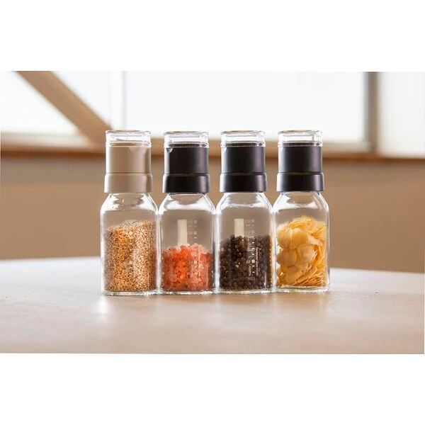 〇深さのある透明なフタにためながらスパイスを挽けるため使用量が分かりやすい。
