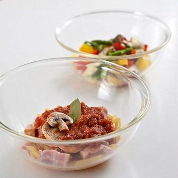 〇オーブン・電子レンジ対応の耐熱ガラス製浅型ボウルの2個セット。