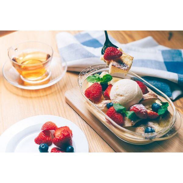 〇オーブン・電子レンジ対応の耐熱ガラス製グラタン皿。