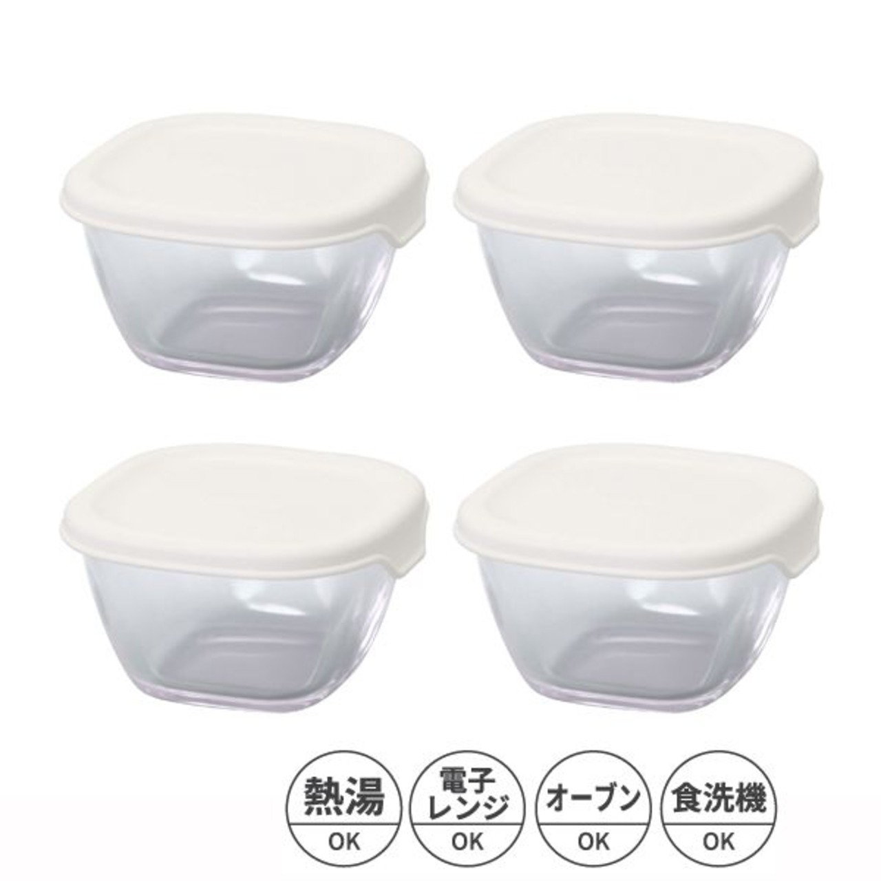 ○耐熱ガラス製のフタ付き小鉢4個セット。