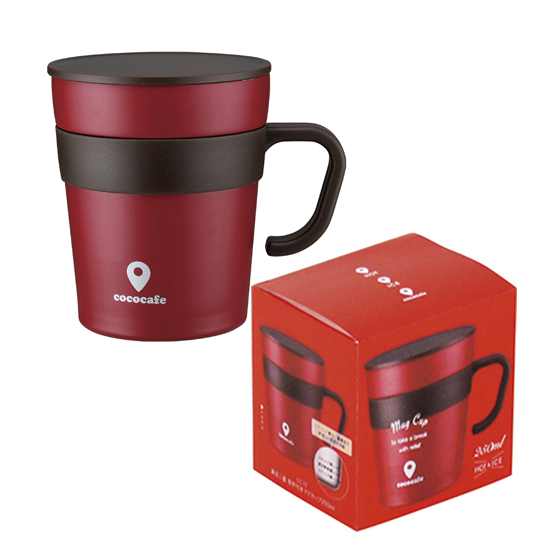 cococafe (ココカフェ)真空二重取手付マグカップ250ml レッド ※表示在庫数で廃盤完売となります。