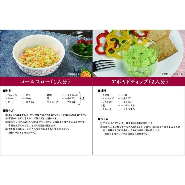 容器:ポリスチレン(耐熱温度80℃ 耐冷温度-20℃)ふた:ポリプロピレン(耐熱温度90℃ 耐冷温度-20℃)ハンドル:ABS樹脂(耐熱温度80℃ 耐冷温度-20℃)ふた軸:ポリアセタール(耐熱温度90℃ 耐冷温度-20℃)カッター部:ポリエチレン(耐熱温度90℃ 耐冷温度-20℃)すべり止め:熱可塑性エラストマー(耐熱温度70℃ 耐冷温度-20℃)カッター:ステンレス鋼