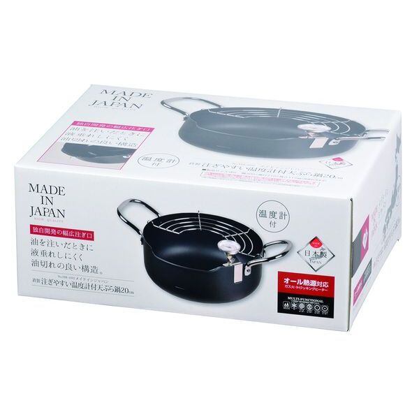 メイドインジャパン 鉄製注ぎやすい温度計付天ぷら鍋20cm