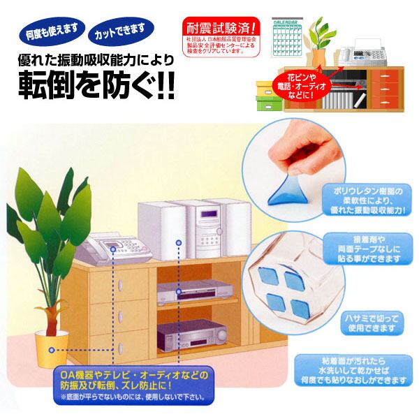 ○地震による、家具・テレビ・オーディオ・OA機器の転倒防止に、抜群の効果を発揮する耐震用接着マット。