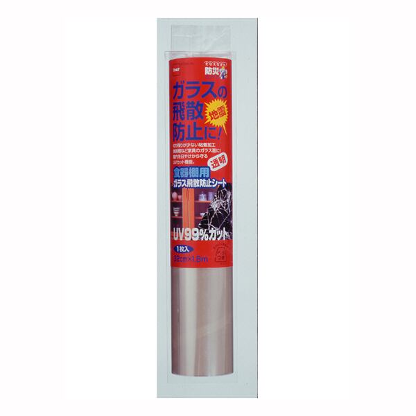 ○窓やガラス扉に貼るだけで、ガラスが割れたときの飛び散りを防ぎ、紫外線をカットする効果もあります。幅32cm×長さ1.8m