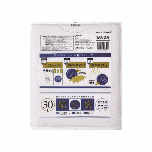 【18個セット】結び袋30L 白半透明 50枚(むすび部150mm)