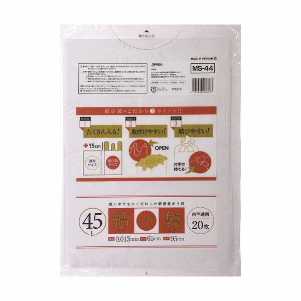 【45個セット】結び袋45L 白半透明 20枚(むすび部150mm)