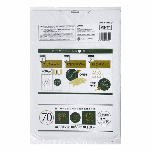 【30個セット】結び袋70L 白半透明 20枚(むすび部200mm)