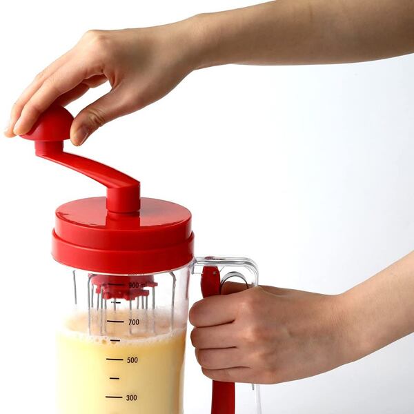 〇容器に材料を入れて、ハンドルに連動、外側回転&内側回転のダブルスピンパワーでかき混ぜが簡単。