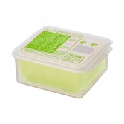 ○ザル付なので、レンジをかけたとき熱気がむらなく循環することで蒸しむらができずおいしく仕上がり、またお野菜を洗うところからあく抜き、水切り、レンジ調理、最後に冷蔵庫での保存まで1つで5役をこなします。