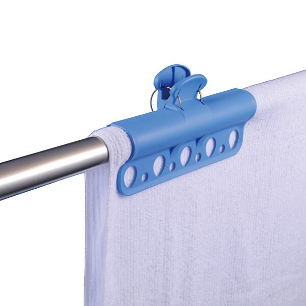〇クリップ式なので物干し竿に片手で取り付けられます。