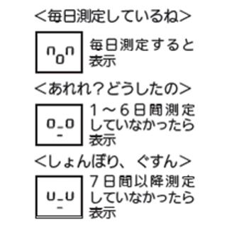 〇測定の継続状況にあわせて表示画面が変化する「マイサポ機能」で毎日の測定継続をサポート。