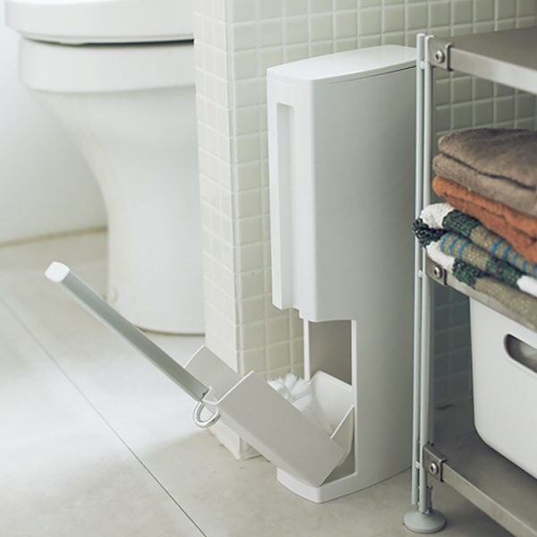 〇トイレの省スヘ?ースを有効活用て?きるようトイレホ?ットとフ?ラシケースが一体化した幅約8cmと超スリム設計。