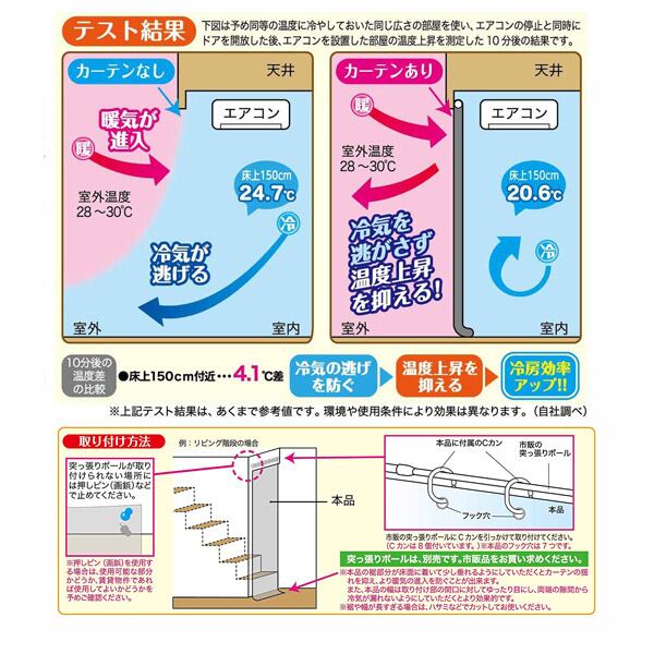 (フリーカットタイプ)〇市販の突っ張りポールを利用して取り付けるので、設置が簡単です。
