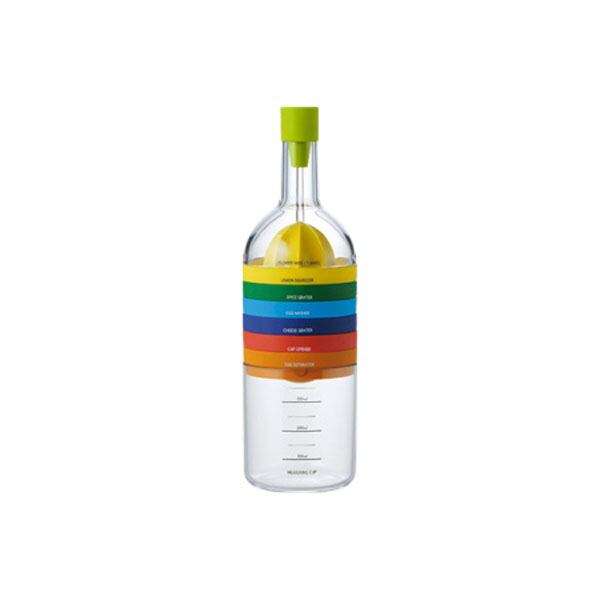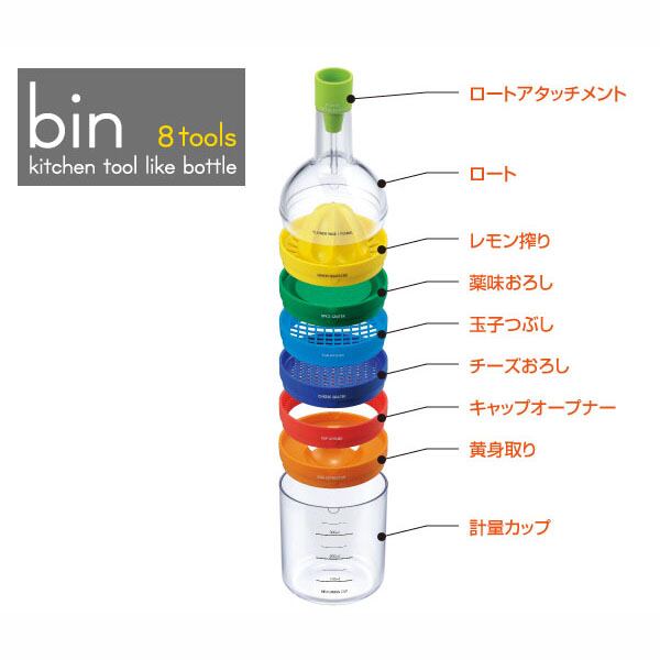ロートアタッチメント・キャップオープナー:エラストマー樹脂(耐熱温度70度 耐冷温度-30度) ロート・レモン絞り・計量カップ:AS樹脂(耐熱温度80度 耐冷温度-30度) 薬味おろし・チーズ削り・黄身取り:ABS樹脂(耐熱温度80度 耐冷温度-30度) 玉子つぶし:ポリプロピレン(耐熱温度120度 耐冷温度-20度)