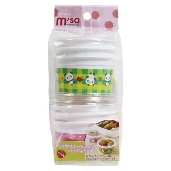 【20個セット】フタ付フルーツカップ パンダ&うさぎ 6個入