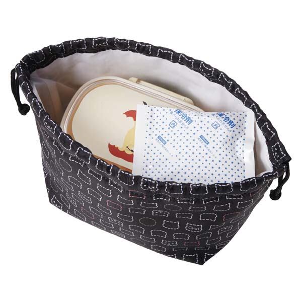 【10個セット】保冷弁当袋きんちゃく シンプルキャット ブラック