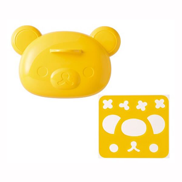 《リラックマ デコカレーの作り方》 1.まな板などの平らな場所で抜き型を使用して 食材を抜いてください。