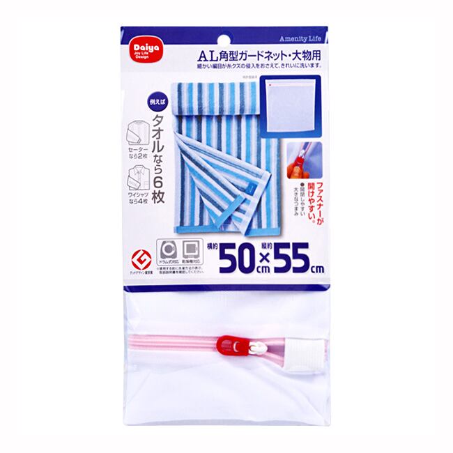 ○タオルなら6枚、セーターなら2枚洗える、たっぷりサイズの洗濯ネットです。