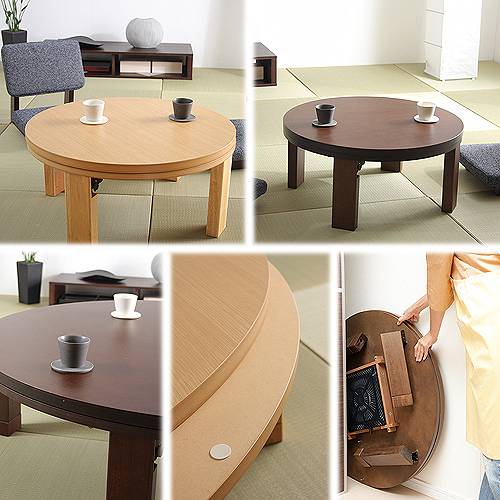 こたつ 円形 天然木丸型折れ脚こたつ-ロンド 75cm 折脚 継ぎ脚 高さ調整 テーブル ローテーブル 天然木 日本製 リモートワーク 在宅ワーク