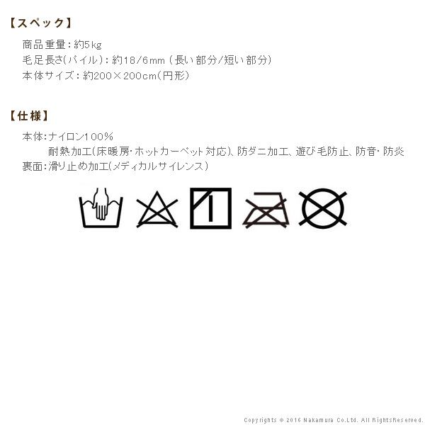 ラグ 洗える ミックスカラーラグ 〔ルーナ〕 丸型 径200cm 防ダニ