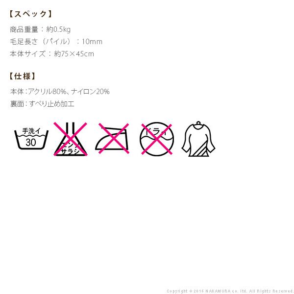 玄関マット 室内 玄関マット 〔ブランシュ〕 75x45cm 洗える