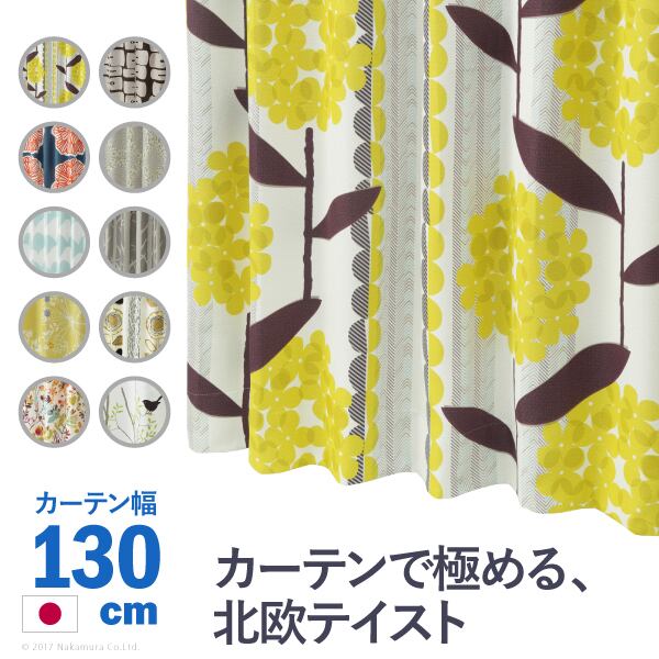 ノルディックデザインカーテン 幅130cm 丈135〜260cm ドレープカーテン 遮光 2級 3級 形状記憶加工 北欧 丸洗い 日本製 10柄 33100617