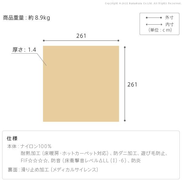 ラグカーペット 正方形 防音防炎ラグ-エイヴァ 261x261cm リビング 高級感 おしゃれ 北欧 無地調 ホットカーペット対応 防音 日本製 カットオーダー