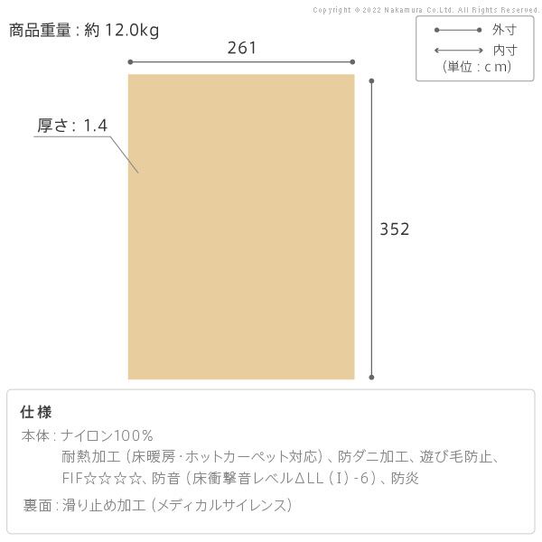 ラグカーペット 長方形 防音防炎ラグ-エイヴァ 261x352cm リビング 高級感 おしゃれ 北欧 無地調 ホットカーペット対応 防音 日本製 カットオーダー