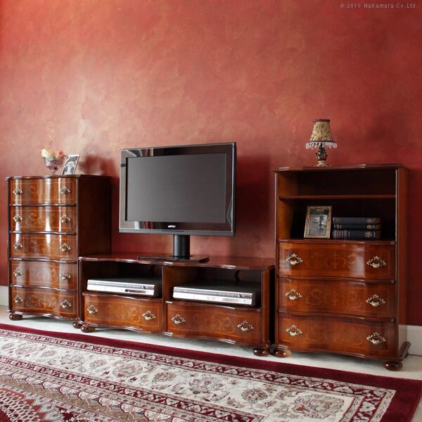 イタリア 家具 ヴェローナクラシック 丸脚3段オープンチェスト(棚板あり) W58cm 丸脚 輸入家具 アンティーク風 イタリア製 おしゃれ 高級感 木製 在宅