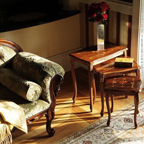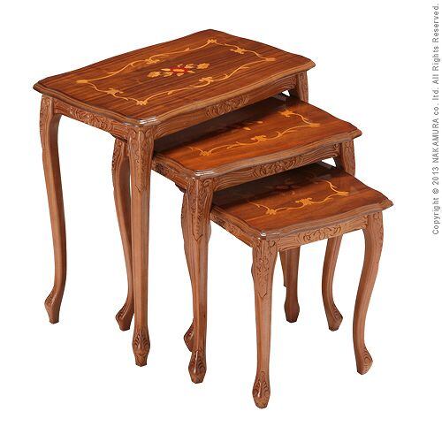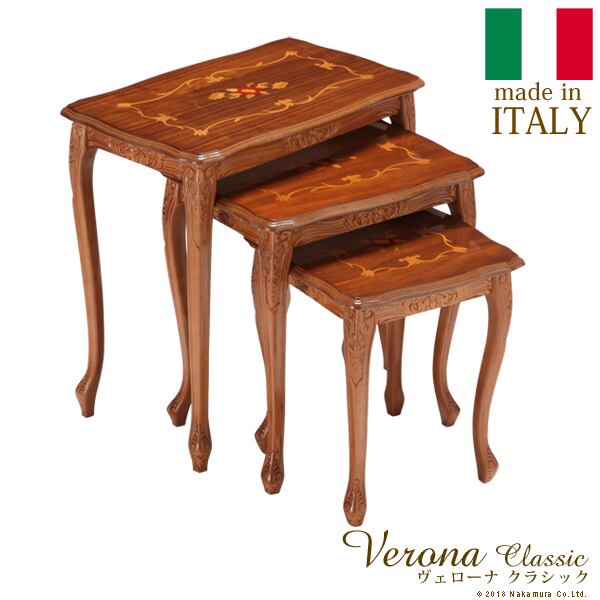 イタリア 家具 ヴェローナクラシック 猫脚象嵌ネストテーブル 猫脚 輸入家具 アンティーク風 イタリア製 おしゃれ 高級感 木製 天然木 リモート 在宅