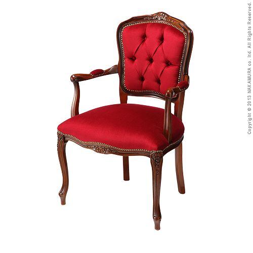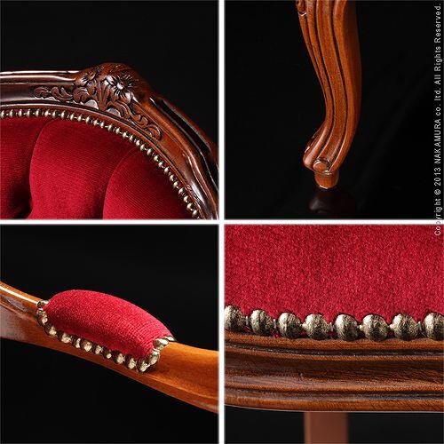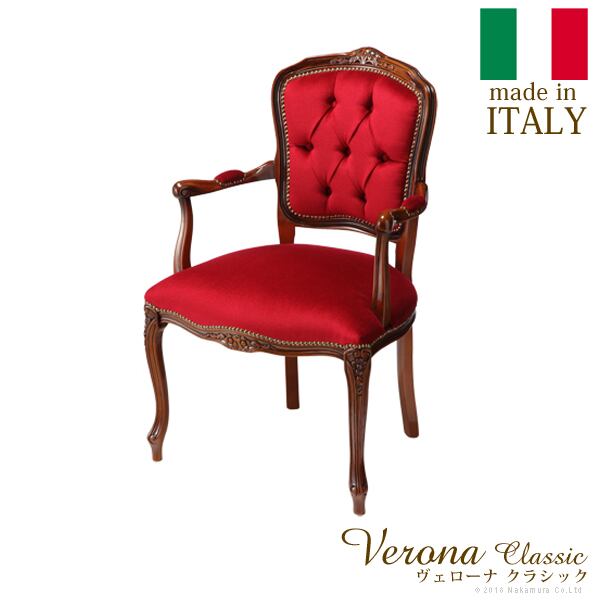 イタリア 家具 ヴェローナクラシック アームチェア-モケットレッド(1人掛) 猫脚 輸入家具 アンティーク風 イタリア製 おしゃれ 高級感 木製 リモート 在宅