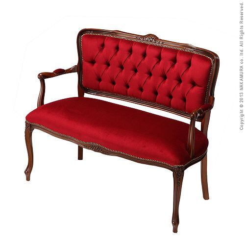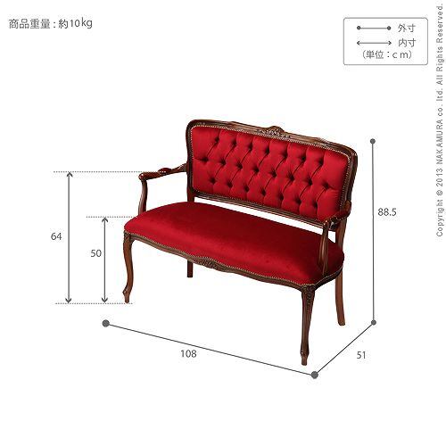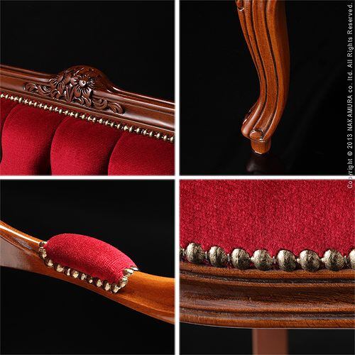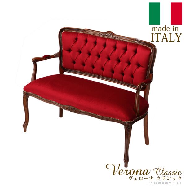 イタリア 家具 ヴェローナクラシック アームチェア-モケットレッド(2人掛) 猫脚 輸入家具 アンティーク風 イタリア製 おしゃれ 高級感 木製 リモート 在宅
