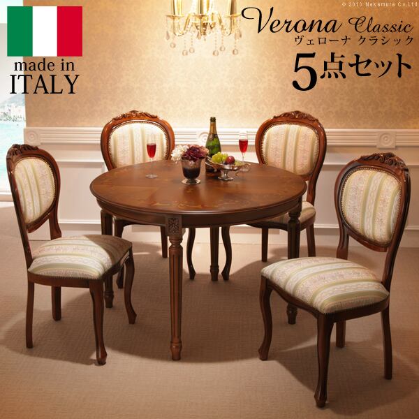 イタリア 家具 ヴェローナクラシック ダイニング5点セット:テーブル幅110cm+チェア-ミックスグリーン4脚 猫脚 輸入家具 アンティーク風 イタリア製 在宅