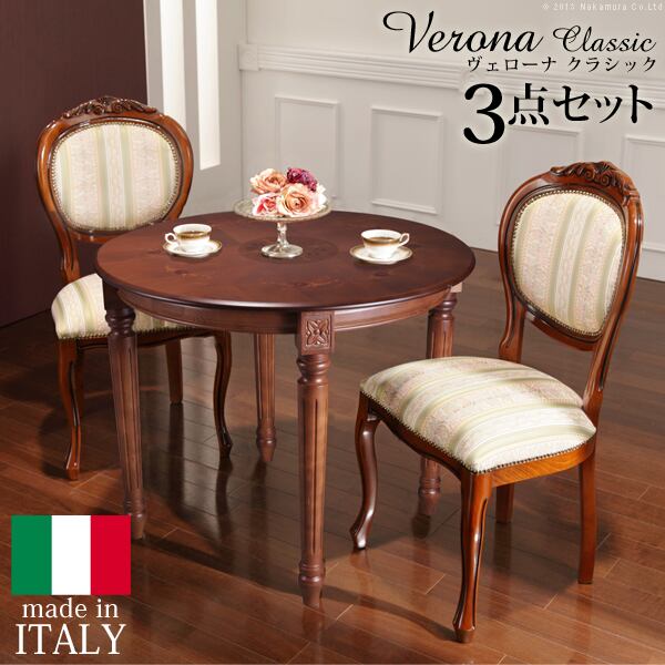 イタリア 家具 ヴェローナクラシック ダイニング3点セット:テーブル幅90cm+チェア-ミックスグリーン2脚 猫脚 輸入家具 アンティーク風 イタリア製 在宅