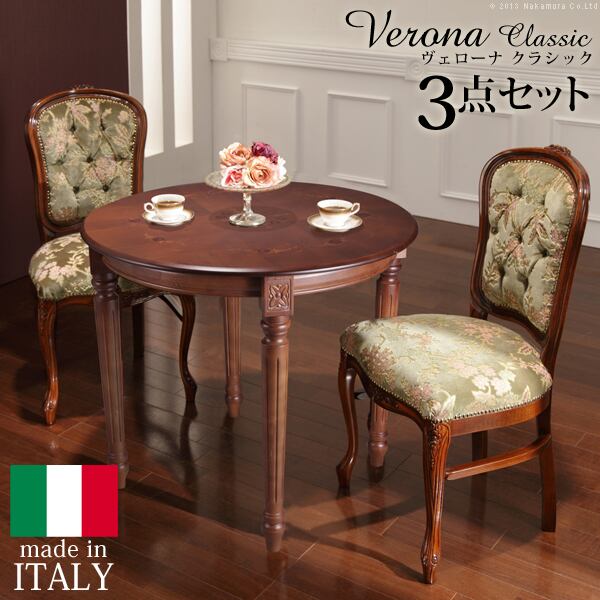 イタリア 家具 ヴェローナクラシック ダイニング3点セット:テーブル幅90cm+チェア-金華山2脚 猫脚 輸入家具 アンティーク風 イタリア製 おしゃれ 高級感 在宅
