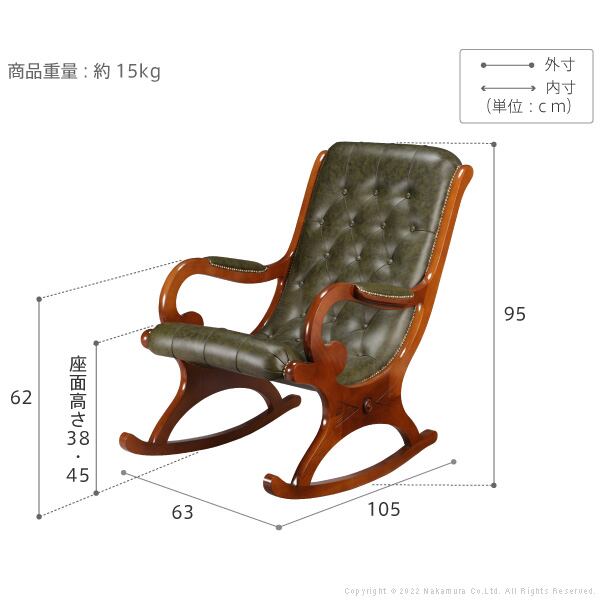 イタリア 家具 ヴェローナクラシック ロッキングチェア-革張り 輸入家具 アンティーク風 イタリア製 おしゃれ 高級感 木製 天然木 リモート 在宅