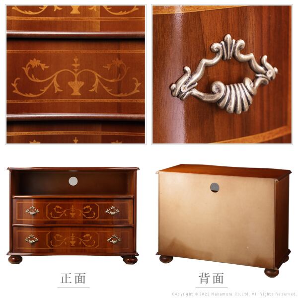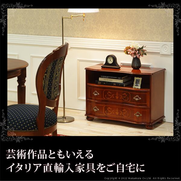 イタリア 家具 ヴェローナクラシック 丸脚2段オープンチェスト W75cm 丸脚 輸入家具 アンティーク風 イタリア製 おしゃれ 高級感 木製 天然木 リモート 在宅