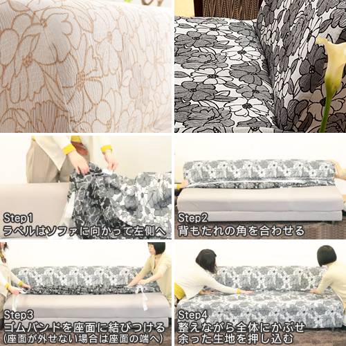 スペイン製 ストレッチフィット ソファカバー FLORES〔フロレス〕アームなし 3人掛け用 ソファーカバー ストレッチ 3人掛け