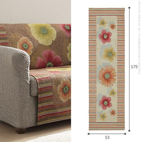 商品について:イタリア製のバンド付きソファカバー。大小に散りばめられたアネモネ柄で気分も明るくリフレッシュ。
