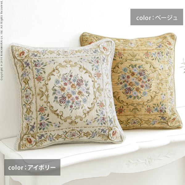 クッション 45×45cm イタリア製ジャガード織りクッションカバー 〔フラワーガーデン〕 45x45cmサイズ用 中身付き 花柄
