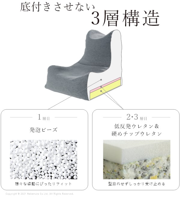 中材:チップウレタン・低反発ウレタン・発砲ビーズ